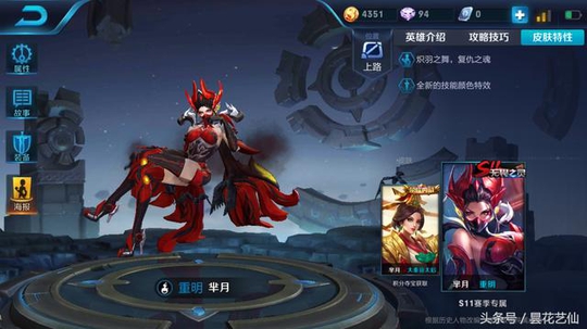 S11赛季皮肤更新为芈月—重明,获取条件跟前赛季一样,黄金以上,胜场10场