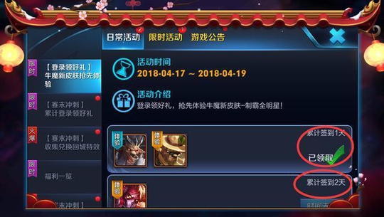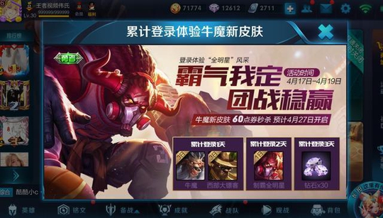 王者荣耀 今天开启登录送牛魔皮肤体验活动 赛季倒计时只有两天