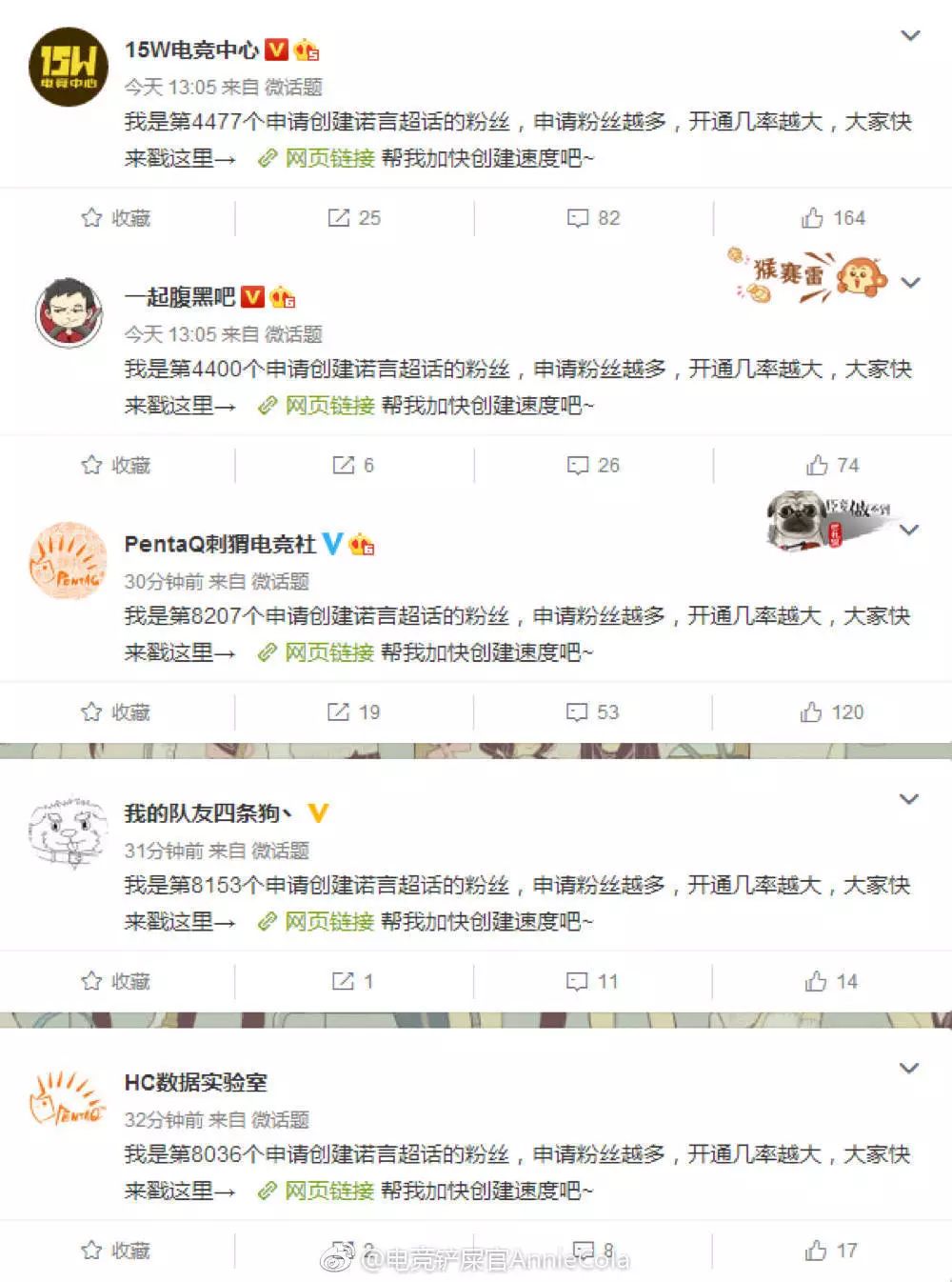 今日中午,事情已经传遍了大半个LPL圈,圈内各路人士开始申请开通诺言的超级话题。