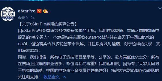 LPL解说泽元也是就此事发表了一波观点,表示还是要对同行业的前辈有所尊敬的。随后Estar官方也是发声了,毕竟动静太大了,对于这波节奏,Estar也是表示了抱歉!