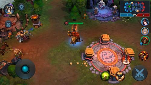 比如《自由之战》就是在原有虚拟摇杆+点触按键基础上,引入了自动锁定+手动切换方案,为攻击按键添加了上滑与下滑两种操作方式——上滑切换英雄,下滑切换小兵,极大改良了移动虚拟摇杆操作切换锁定目标体验不佳的问题。此外,首先采用了双轮盘的模式,大多数技能释放需要手动判定方向,在一定程度上还原了MOBA主动预判和精准操作的乐趣。