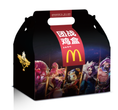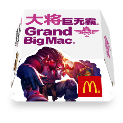 活动期间,麦当劳首次为《王者荣耀》定制主题餐品,重磅推出三款不同大小的“巨无霸”汉堡,并首推“保护我方水晶”饮料、“红蓝霸霸力量条”等《王者荣耀》主题小吃。此外更将有“团战鸡盒”、“王者小食盒”等定制套餐,助力广大玩家在开黑节携手共赢!