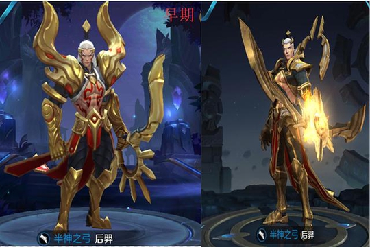 早期的后羿和现在版本的后羿对比,个人觉得早期的其实蛮不错的。