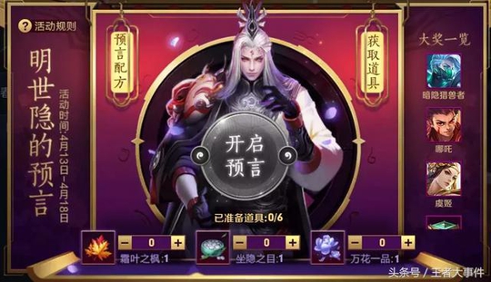 新赛季越来越近,五五开黑节的预热活动也越来越火热,大家有没有注意到,13号新出的限时活动—— 明世隐的预言 。就在昨天事件君就抽到了“绿陵王”的暗影猎兽者皮肤。