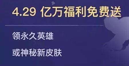还有一款皮肤早在之前的55开黑节预热活动中官方就提到过,4月29号将会有活动领取永久英雄或神秘新皮肤。