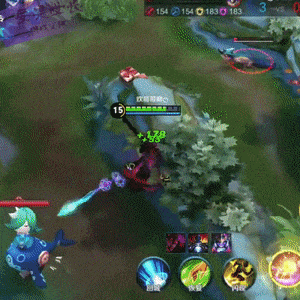 首先是一技能,这位大神自制的这款皮肤,一技能带有泡沫效果,打击敌人周围还会产生大量的泡泡,这个技能特效很好看。