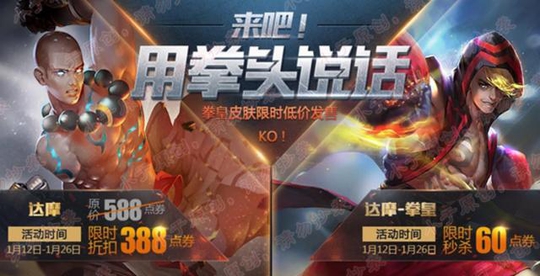 最开始的第一款6元限定皮肤是达摩的拳皇(那个时候还叫做拳皇,后来才改的拳王);只是拳皇登场的时候99%的玩家还没有入坑吧,时间是2016.1.12号,小于自己都是16年3月;也就是S2快结束的时候入的坑~