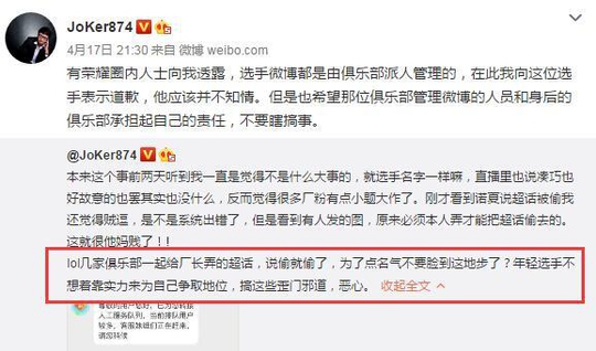 王者荣耀eStar被指偷诺言超话 Joker:为了点名气这么不要脸?