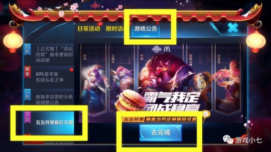 好了废话不多说,目前王者荣耀官网已经爆料了“五五开黑节”的一些相关活动,游戏里面也有相关的介绍,只是隐藏的比较深,内容在,活动-游戏公告-五五开黑赢巨无霸,的介绍里面。