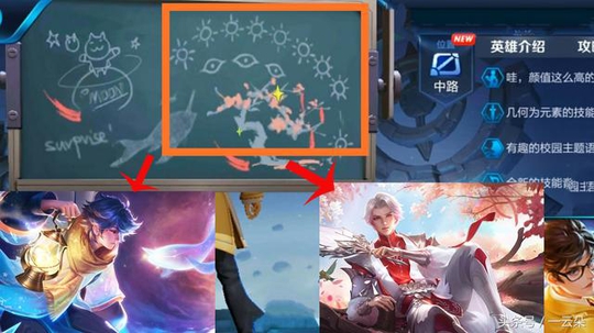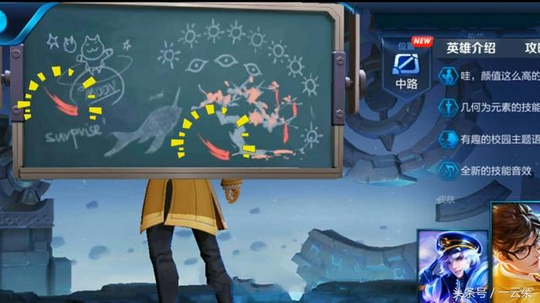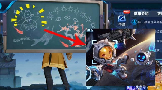 首先从黑板左上角可以看到,一个小人站在球上,联想到之前已经出过的鲁班七号星空梦想,可以确定基本就是他了