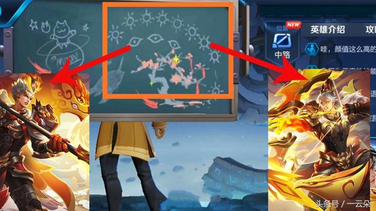 以上的暗示点都已经出了相应的新皮肤,而图中两个鲜红色飘着的图案,目前为止却没有相对应的皮肤。仔细一看仿佛像两条鲤鱼,而有关鲤鱼的英雄就莫非是大乔了,所以按这个思路,基本可以确定接下来的黑板新皮肤,很有可能就是大乔