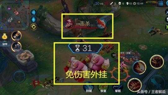 免疫伤害。可能很多小伙伴看到这个次都会想到英雄的霸体状态。但是当安琪拉这样的脆皮法师都可以无伤拆塔的时候,你就会觉得真的很变态了。没错,这种外挂的作用就是可以让任何英雄达到免疫任何伤害的效果。这绝对是严重影响游戏平衡的,所以出现之后马上就被封掉了。毕竟作弊太明显,而且也很容易判定。