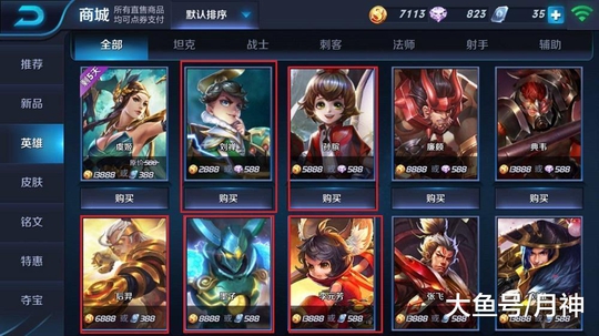 两年前的商城售卖英雄截图和现在的没有什么太大变化,只不过图中的刘禅、孙膑、后羿、墨子和李元芳因为重塑,所以头像更改了!