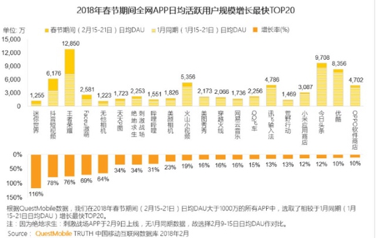 2018年春节,王者荣耀的日活玩家数达到了惊人的1.2亿…而同期最近大火的刺激战场,日活用户数才2000万,对,刺激战场跟王者荣耀之间差了6个荒野行动…数据来自quest mobile,不相信的你自己在网上也能搜到。