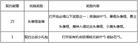 每日参与契约之战和获胜1场均可以得到两个徽章,25个徽章才能兑换一个头像框宝箱。
