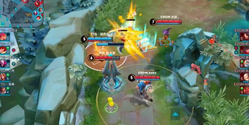 他们的对手EDGM也都知道路西法是YTG一个非常强大的点,所以说一直都比较针对他。路西法是使用的花木兰打上路。于是,EDGM长期派两个人在上路对花木兰进行压制,一个是无痕的老夫子,负责控制花木兰。而另一个是前期发育很好的初晨,负责打输出,在草丛中蹲了很久以后,终于第一次越塔强杀了花木兰。