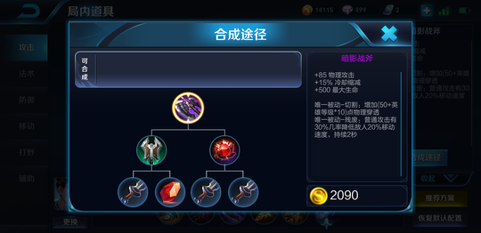 很多射手都不会选择这件装备,基本上都认为破甲弓更有用,确实单论对射手的输出提升破甲弓更强,但是如果是 逆风局 的话,我们要做的就是 拖延时间 , 争取 队友的 发育 ,拉近与对手的差距, 暗影战斧 提供 百分之十五的冷却缩减, 八十五物理攻击, 额外的五百点生命值 , 被动五十加英雄等级乘十的物理穿透 ,还有普攻百分之三十降低敌人百分之二十的移速。 提供减冷却,额外生命值,成长物穿,这是逆风射手替代破甲弓,防止被秒掉的极好的装备。