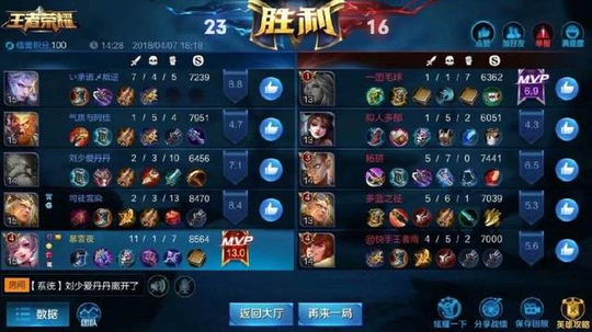 我们先看看玩家的图中前三局都是小乔。看来这位玩家特别喜欢法师英雄!不过像这种局一看就知道段位绝对不超过铂金,顶多也就是铂金局。那么玩家的小乔玩得那可是相当的不错啊,看完他的战绩每一局都表现得非常不错。就拿这局23比16的战绩来说吧!小乔玩家自己就是大神的存在,这完全就是带其他队友上分的节奏,然而他这样既然还要求带,这我就想不通了。