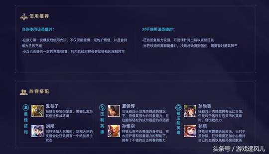 值得一提的是,狂铁的回复能力很强,并且拥有持续爆发能力,狂铁可以通过团战施放大招,然后用大招不断的为技能增加能力,这样就可以持续强化敌人,绝对可以在团战中成为神一样的英雄。更多王者荣耀资讯,请关注游戏逐风儿!