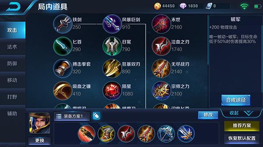 六神装:追击刀锋、疾步之靴、泣血之刃、无尽战刃、破甲弓、破军