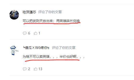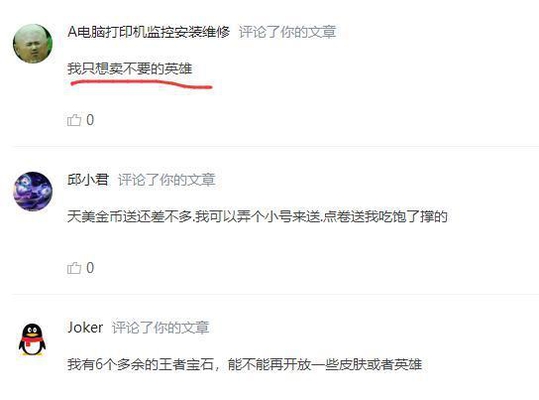 还有网友表示天美不如出个卖英雄的系统,直接把那些不经常用的英雄给卖了多好。