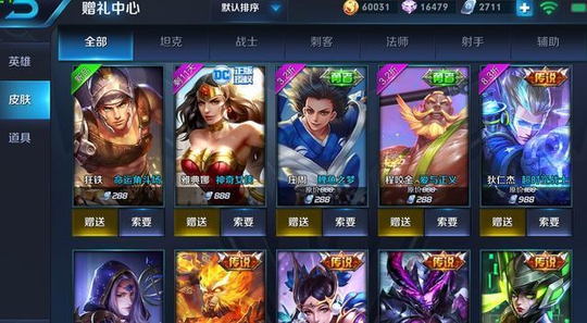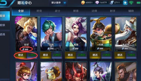 英雄为第一个选项,因为账号的金币英雄都有了,所以没有索要的按钮,而只有一个赠送的按钮。