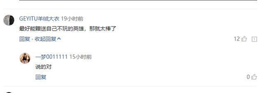 第一个玩家的提议也是蛮好的,直接赠送自己不经常玩的英雄。