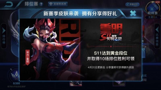 以上就是王者荣耀更新之后的大概内容了,王者荣耀s11赛季第一天估计上分很难又逢周末,排位上分需谨慎哦。