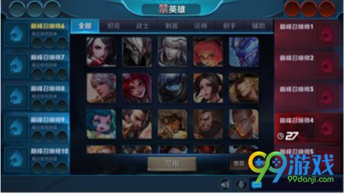 2. 为了使比赛更具竞技性,巅峰赛中每方玩家能够禁3名英雄,由双方的3,4,5楼玩家交替禁用