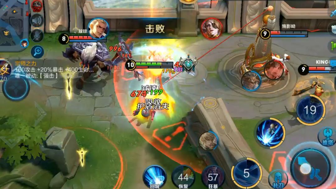 由于前中期一直压制射手,所以在后期的时候,狂铁到达13级之后后羿才11级,因此这个时候其根本不怕,直接冲塔把他强杀了,配合队友推掉了水晶,拿下了这一局的胜利!