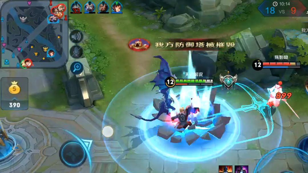 在游戏进行到10分钟的时候,狂铁无意间瞄了一下小地图,竟然发现李白在偷己方防御塔,这还得了,于是马上回城赶到下路,虽然阻止了其推塔,但遗憾的是,由于位移技能跟不上,其还是安然逃跑了!
