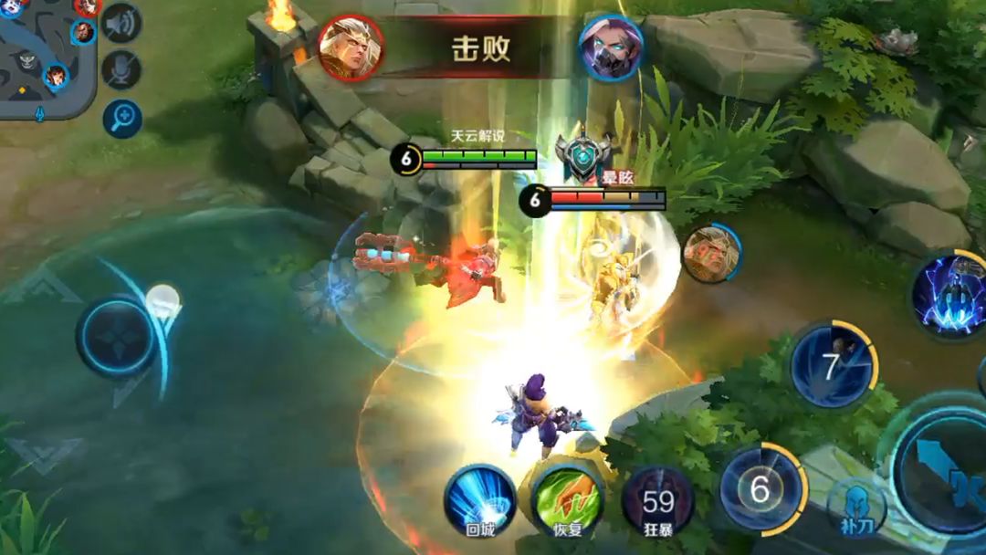 利用上一波两个人头的积累,狂铁优先到达六级,但是在与后羿的单挑之中,突然闯进来一个牛魔,这个就很难受了,没办法,只好将射手直接击杀,但是自己也跑不了了!