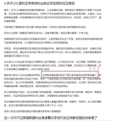 在这里我们且不论这场两个游戏圈的纷争究竟谁对谁错。单单这篇文章所表达的态度就十分令人反感。一篇看似科普却毫无依据的文章,直接将所有的锅甩向了LOL的粉丝。其言下之意无非是想表达,王者荣耀如今已经成为主流。LOL圈是在吃不着葡萄说葡萄酸而已。 这种极端性的言论实在不敢苟同。也许这也是为何LOL圈的解说主持们义愤填膺的原因吧。