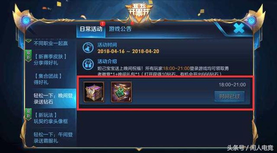 王者荣耀的活动可以说是不间断的,在各种大型活动的同时也会伴随着各种小的登录福利,最常见的就是这个登陆送钻石活动。很多玩家登录游戏时间不固定,所以经常错过这些奖励,一般来说奖励主要在中午12点到14点,跟晚上的18点到21点两个时间段,这些活动不仅可以获取钻石更可以获得用来兑换奖励的道具。