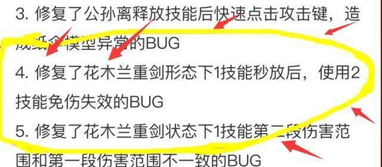 20号的更新里有提到过,已经修复了花木兰重剑形态下1技能秒放后,使用2技能免伤失效的BUG,但是,经过热心网友的测试,发现这个BUG并没有修复?