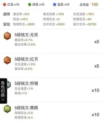 也比较依赖铭文的暴击伤害提升,蓝色铭文可以换5个夺萃增加赖线能力,看个人爱好。