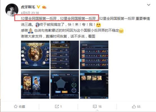 确实这场比赛不管从意识还是走位上说,都没有任何瑕疵,难怪能够第一时间问鼎王者,当然除了成为王者第一人,啊毛曾经也是52星的荣耀王者,全网国服第一后羿,我们都知道后羿这个英雄上限很低,腿短也成为他最大的缺陷,在团战中如果找不到合适的位置就很容易被敌方切死,也使得后羿在高端局中成为“最难”操作的英雄之一,并且上个版本的射手是什么情况想必小伙伴应该都清楚。没有一定实力的玩家是很难用后羿打上荣耀王者。