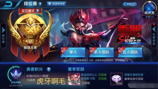 啊毛能够成为S11新赛季的第一个王者相信大多数人已经不对此感到意外了,因为之前S9赛季时第一个王者也是啊毛,同样是用马可波罗一直连胜。而这次S11新赛季啊毛同样只用了三小时就冲上了第一个王者,并且是直接19连胜冲上王者,其他虎牙主播也紧跟其后,不过并没有啊毛这么快。