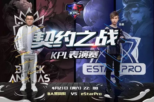 第一场KPL契约之战表演赛由BA黑凤梨对抗eStarPRo战队,新晋实力中单选手居居和立志成为国服第一中单的伪装相遇会擦出怎样的火花呢?