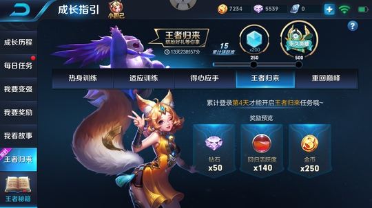 王者荣耀的小伙伴们都知道这个游戏里面有一个回归系统,当你有一段时间没有登录过游戏后,在重新登录游戏的话,系统就会送你一个回归礼包