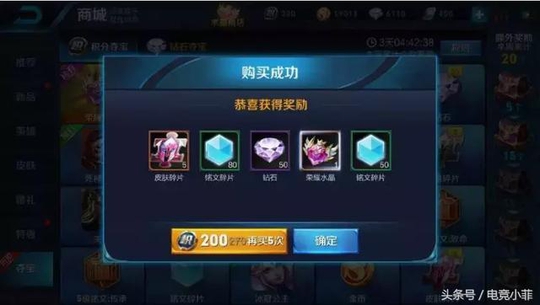 玩家晒出自己抽奖的截图,第二十次的时候就抽到了一个荣耀水晶,不过最幸运的还属这个玩家了,抽了五次就得到了两个荣耀水晶和一个冰冠公主的皮肤,只想说很幸运。