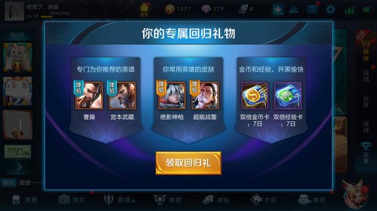 这个活动简单来说就是回归活动,在你没有时间去玩游戏等了两个月左右去登录游戏,就会发现自己收到了一个回归大礼包,具体的可能因人而异,比如火龙哥的这个小号,就是两个月没有登录游戏,昨天晚上新赛季开始了就去登录了一下看看自己段位怎么样了,然后我就发现自己被天美选中了。收到了梦奇发来的一封信,然后我点开一看就这样了。