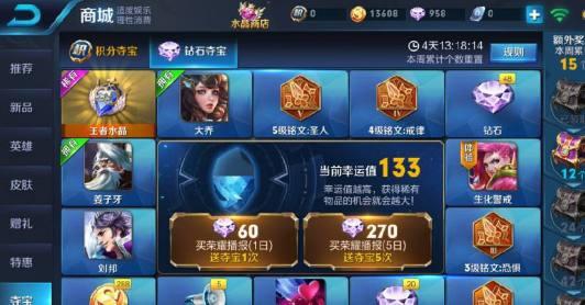 另一个福利就是和上面的钻石获取方式有关了,只要攒够了60个钻石(应该很简单),就可以直接去抽奖了,我目前为止抽的最好的奖品就是大乔这个英雄了,应该说还是非常的赚的,当然大多数的时候抽到的都是喇叭或者钻石,抽到钻石其实是最生气的,因为这个就是一个钻石换钻石的玩法了,这个至少要亏12个钻石。还是很悲剧啊。