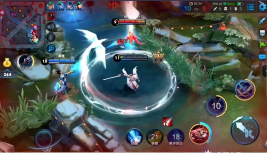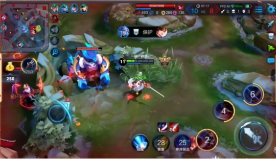 在武则天释放技能的一瞬间,韩跑跑穿墙而下。不过这一波,浪浪略有失误,走位看起来挺风骚,但是还是被武则天的技能攻击到了。