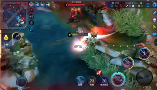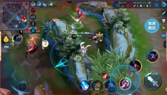 本来已经残血的李白见势撒腿就跑,直接一技能先和百里玄策拉开了距离。可不巧的是,对面的武则天,也过来包抄韩跑跑。跑跑按这一技能不放,准备随时找位置位移。