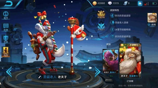很巧,老夫子还有一款免费皮肤,就是上图的这个圣诞老人,不过这款皮肤虽说免费,但获取途径却十分困难,需要达到名师6才能获得该皮肤,也就是说要收很多的徒弟。