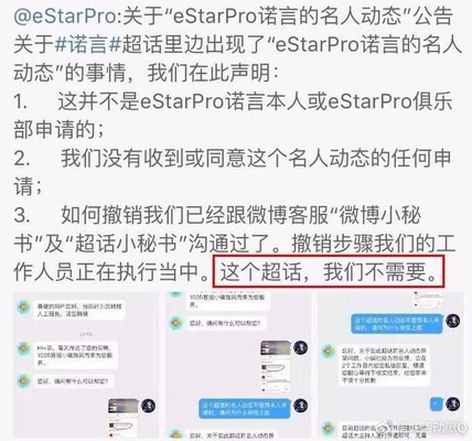 这次的微博超话本来是给LPL职业选手明凯申请的,但不知怎么的就跑到了KPLEstarPro战队的“诺言”手上。LPL粉丝表示撤除超话,而且表示KPL脸皮很厚,是不是你的你都要。接着E战队官方微博就发出了通告,本来只是一封申明,但是结尾处的一句:这个超话,我们不需要直接再次挑起了大战。就连英雄联盟的解说管泽元都看不下去了。