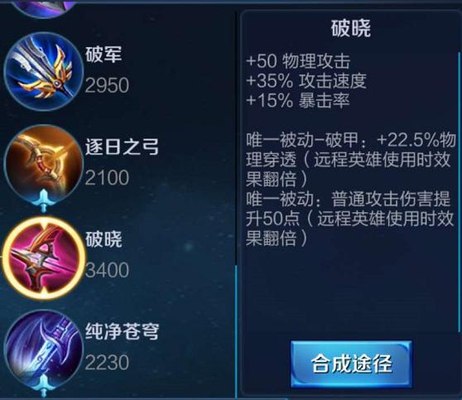 如图,其合成过程多为小件支撑而成,而且穿云弓、速击之枪和都是前期比较常用的小件装备。