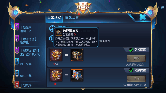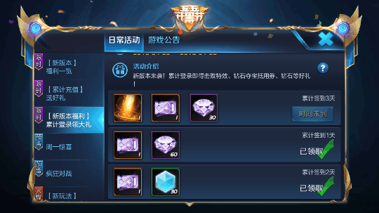 其他七七八八的活动杯水车薪。当然这次更新的福利中还有其他的福利,比如累计登录送大礼中赠送的钻石抽奖券以及钻石,最高登录三天是赠送三日金色闪光特效,一个钻石抽奖券以及30个钻石。还有一个稍微有看头的就是玩契约之战模式中可以有兑换头像或者选择兑换碎片和钻石的机会。除此之外这次的更新中也就没有什么更加值得让人去期待的东西了。