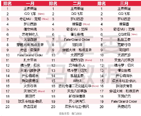 从下面的表里也可以看出《王者荣耀》一直蝉联榜首,后起之秀QQ飞车紧随其后,而季军的位置则是《梦幻西游》和《奇迹MU:觉醒》轮坐,看来网易还需要多加努力才能赶上腾讯。